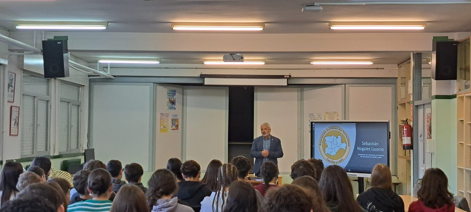 El presidente de la AvtCYL, Sebastián Nogales, relató su historia como víctima y explicó a los alumnos las consecuencias humanas y sociales de la violencia terrorista, así como la importancia de preservar la memoria, la verdad y la dignidad de las víctimas.